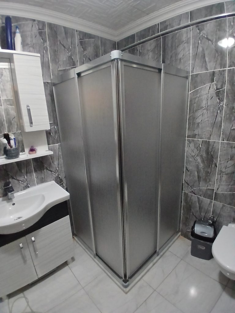 Mevcut Banyo içerisinde bulunan eski sistem duş teknesi ve kabin yerine Şimdilerde yeni yapılan yapılarda,da sıklıkla kullanılan sıfır zemin fayans üzeri duşakabin hizmeti vermekteyiz.
